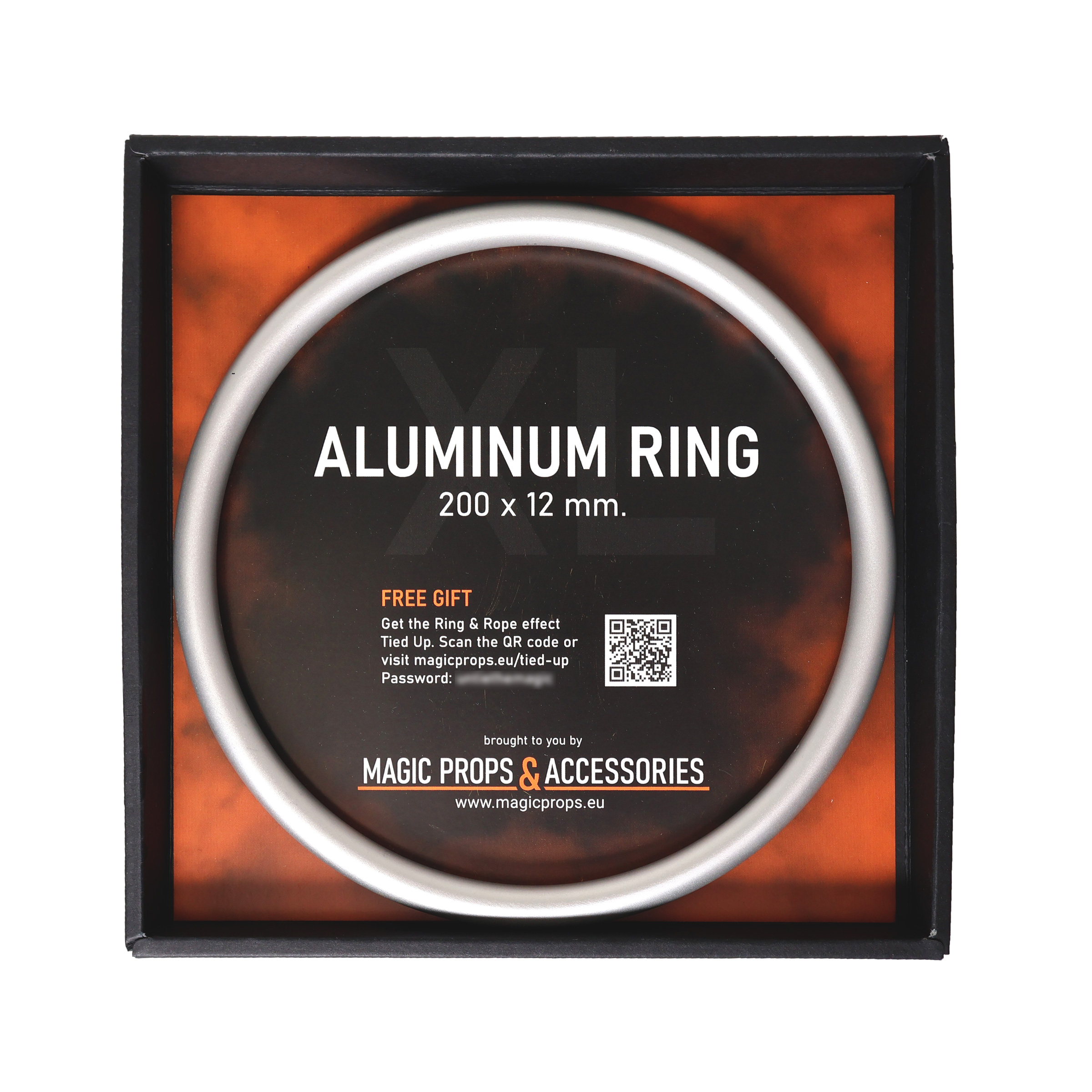 A seamless 200 mm aluminum ring built for stage and parlor magic. Strong, elegant, and easy to handle — making your Ring on Rope routine bigger, clearer, and more impressive. Includes the effect Tied Up as a free gift.